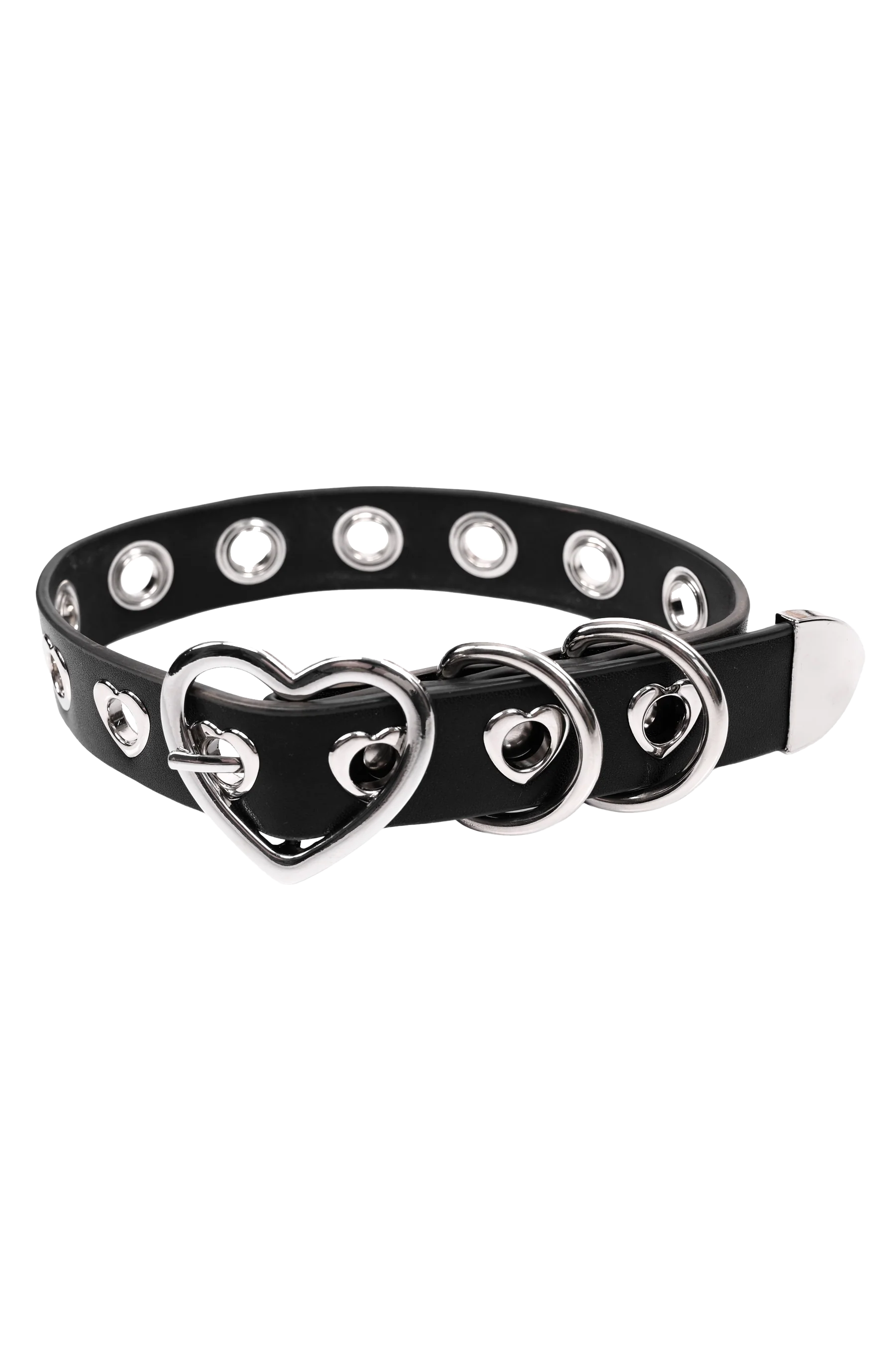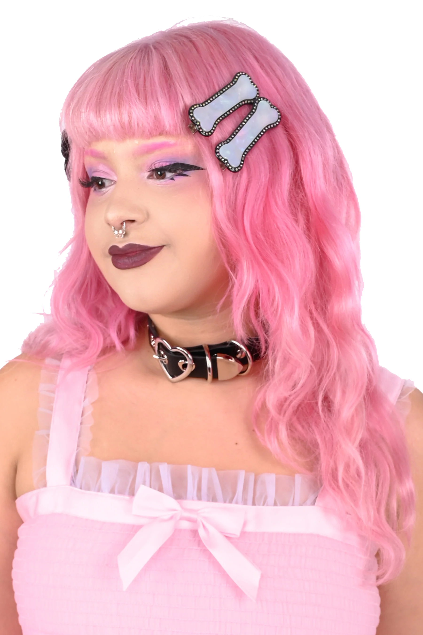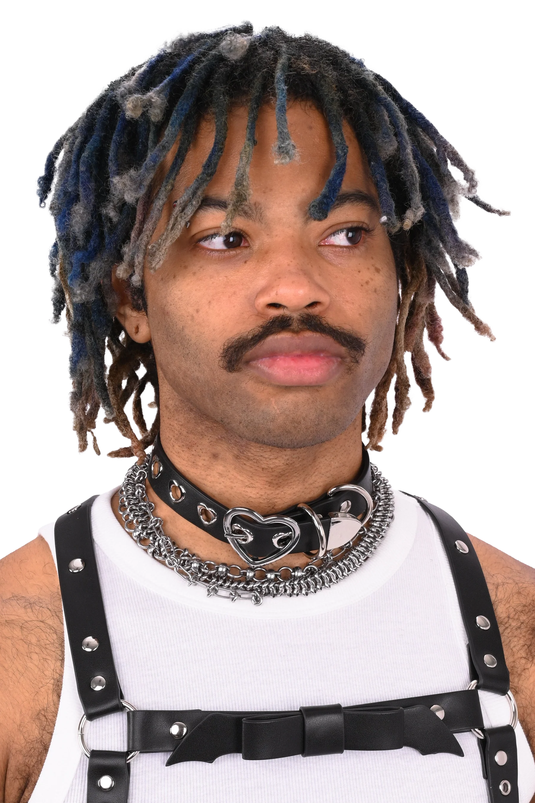 A choker necklace for the pastel goth cuties, complete with a cute heart buckle. The heart rivets are not only cute, but go all around the length of the choker, offering an extremely adjustable fit. Made to match perfectly with our Vampie Harness.