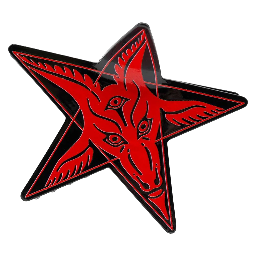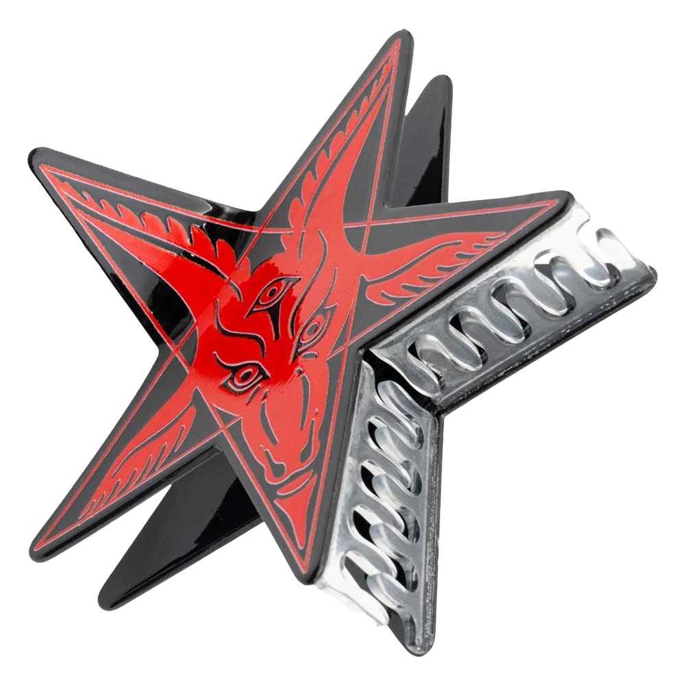 This hellish hair accessory features Baphomet on a pentagram shaped clip perfect for completing a devilish up-do. Made from a durable acrylic with a sturdy spring to hold your locks in place to hell and back. Clip size approx: 4.2" (10.7cm) x 3.5" (9cm).