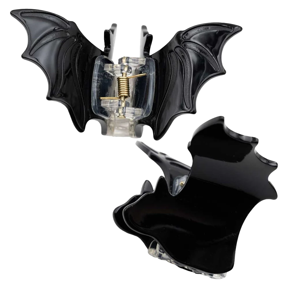 This gothic inspired hair accessory comes in a set of two clips and is perfect for finishing off your dark look. Made from durable acrylic and sized for less amounts of hair, half up half down or finishing of you spooky hair styles. No need to worry about it slipping out of your hair during a night out because these bat holds on tight. Clip size approx: 1.5" (3.8cm) x 1.3" (3.5cm).