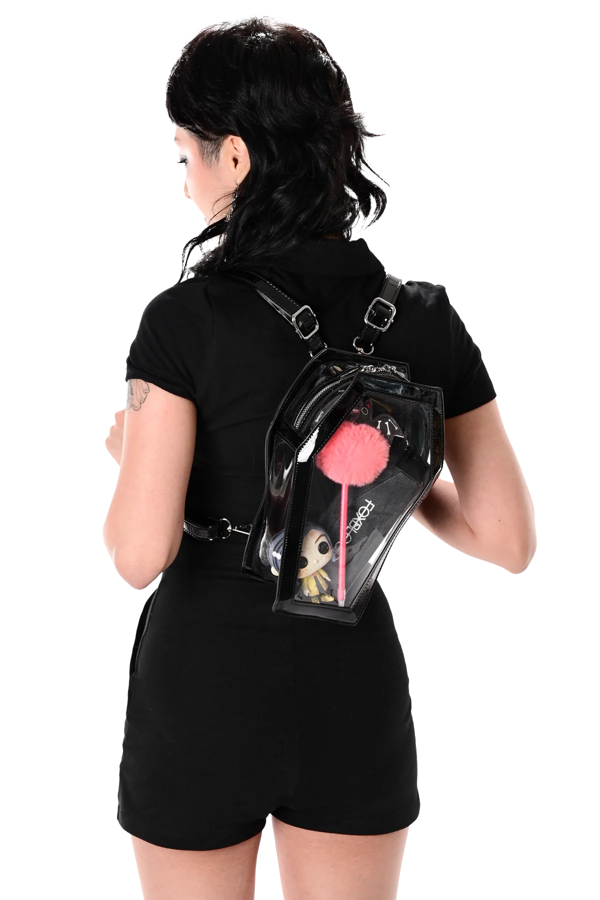 We designed these coffin bags to take to concerts, events, anything that requires a clear bag!