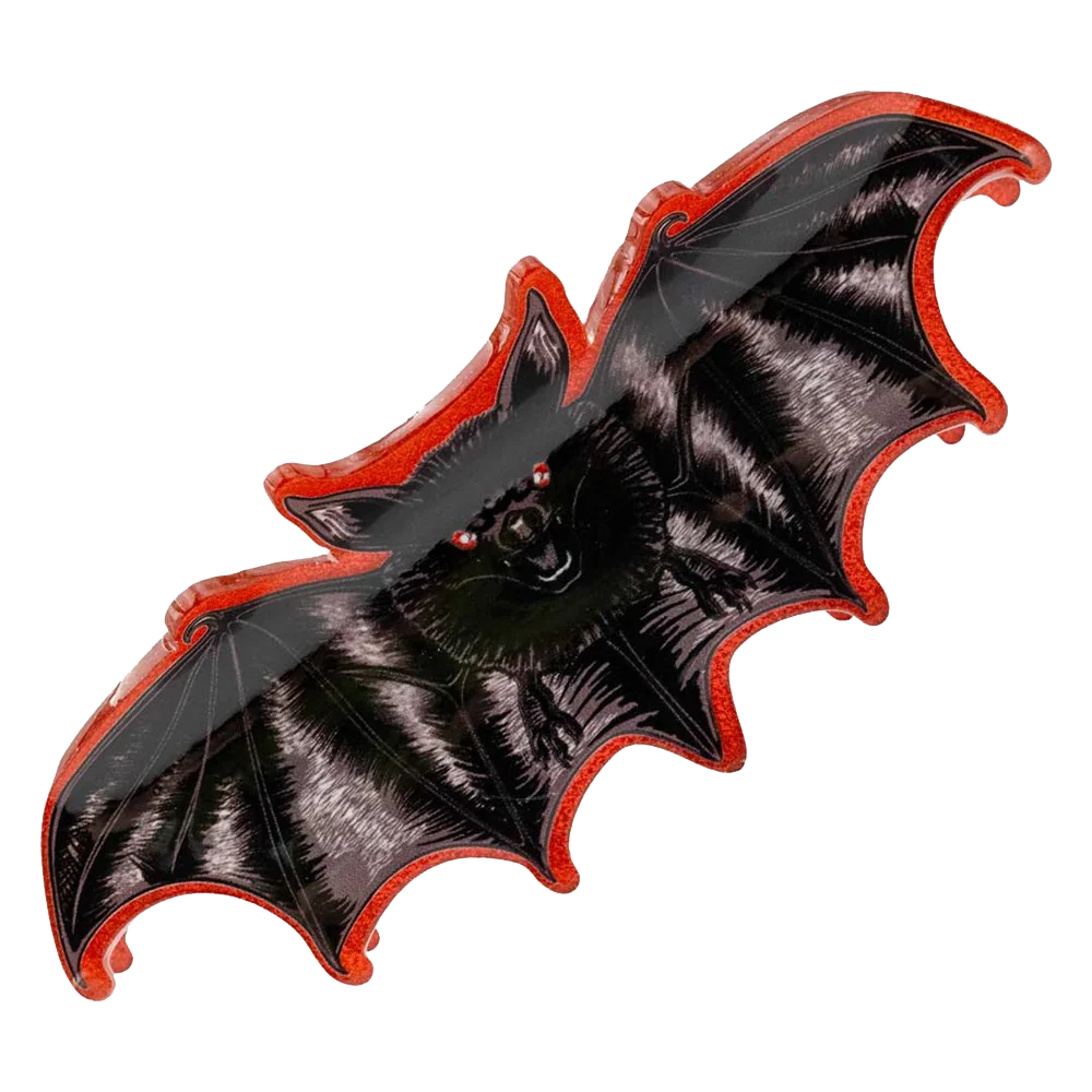 This gothic inspired hair accessory is perfect for finishing off your dark look. Made from a durable red glitter acrylic. No need to worry about it slipping out of your hair during a night out because this bat will hold on tight. Clip size approx: 5.6" (14.2cm) x 2" (5cm)