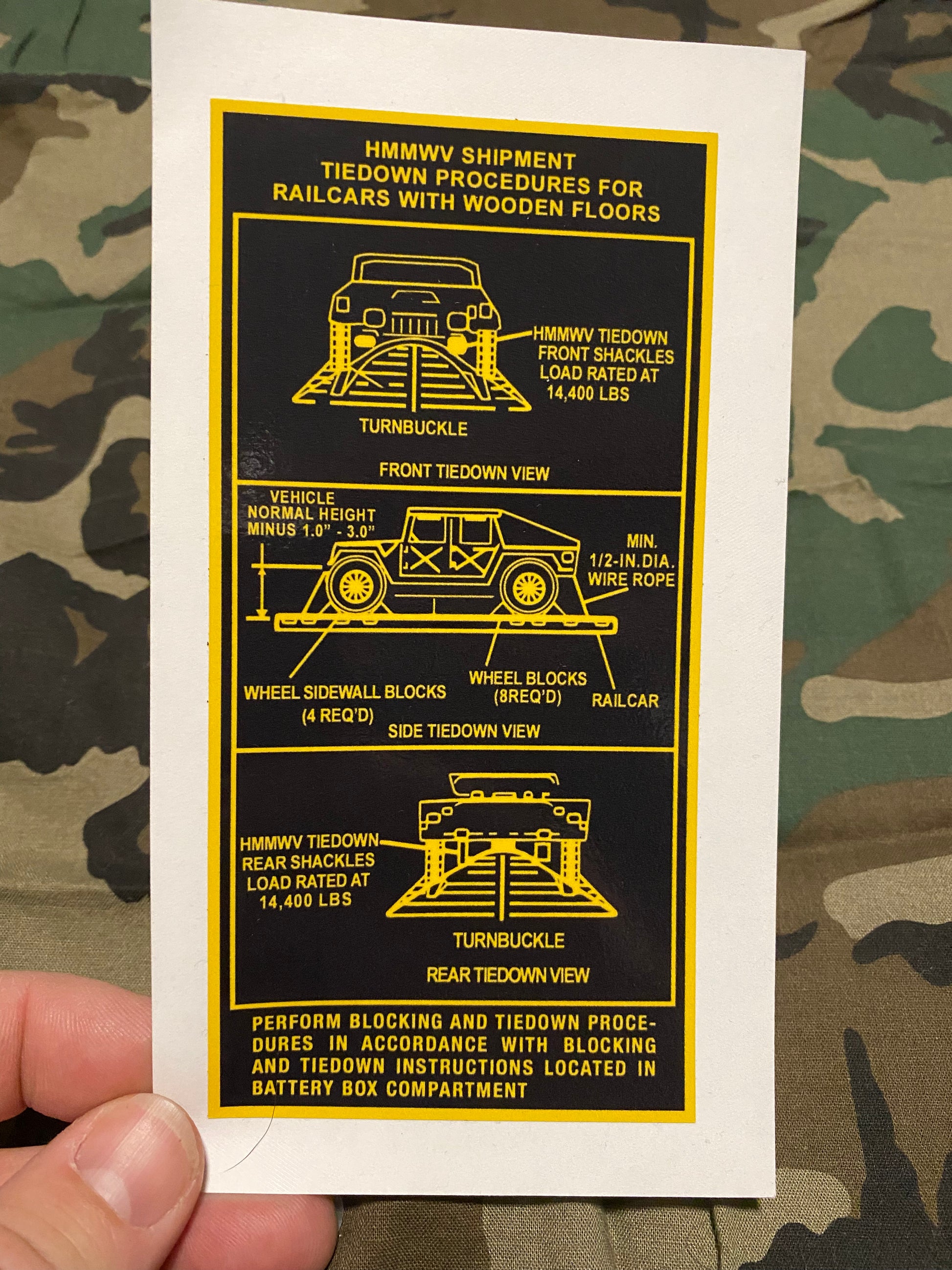 HMMWV TIE DOWN PROCEDURE DECAL
