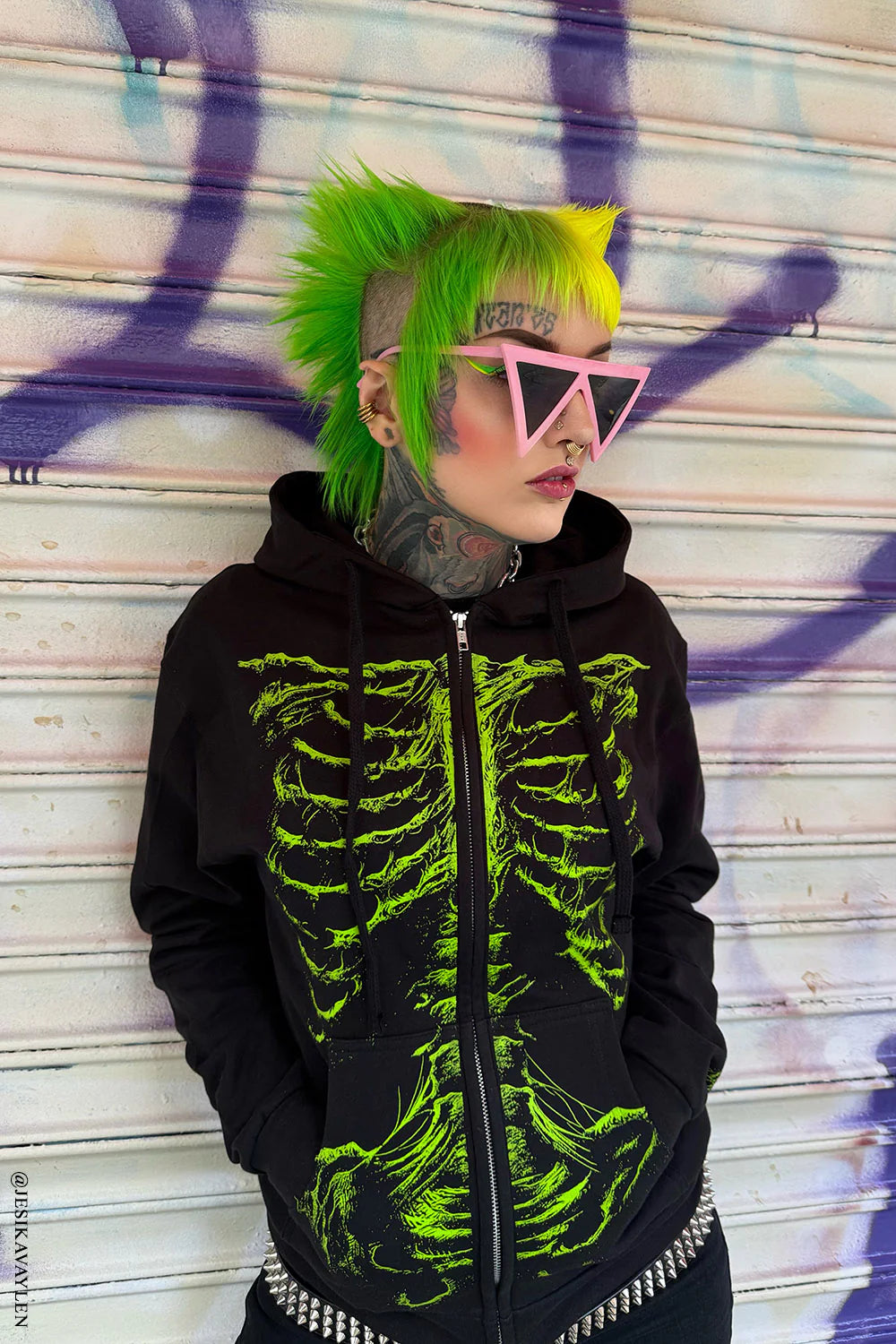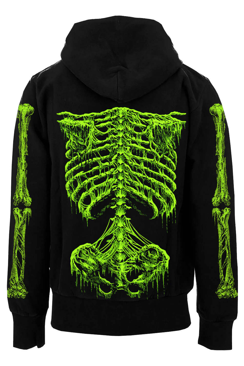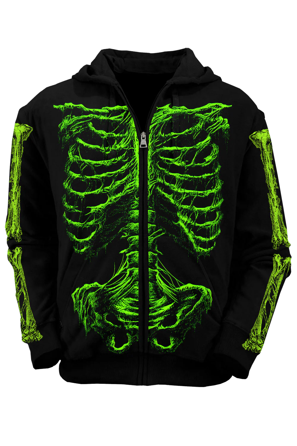 Zombie Rot Skeleton Zipper Hoodie [Monster Green]
